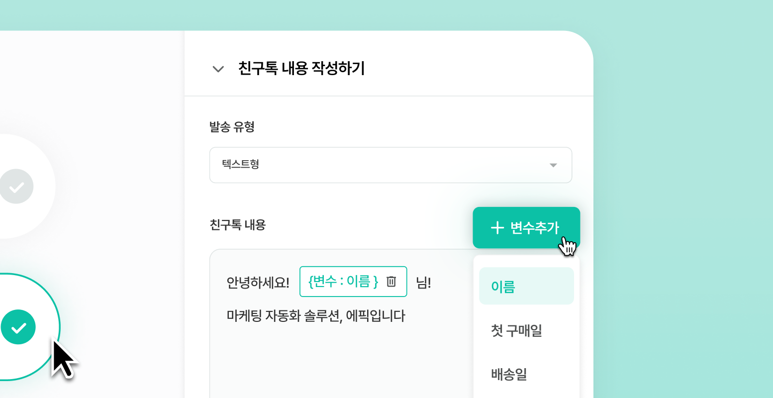 에픽은 개발자 없이도 손쉽게 설정할 수 있는 CRM 마케팅 자동화 툴입니다. 에픽을 사용해 재구매를 유도하고, 단골 고객을 만들어 보세요.